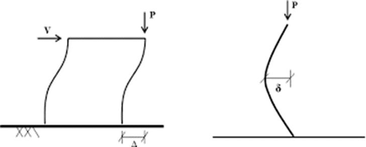 For instance, when a structure is subjected to wind or earthquake forces (V), the displaced structure is simultaneouslysubjectedtoverticalgravityloads(P).The total vertical load P multiplied by the structural displacement (∆) causes secondary moments to be producedintothestructure.