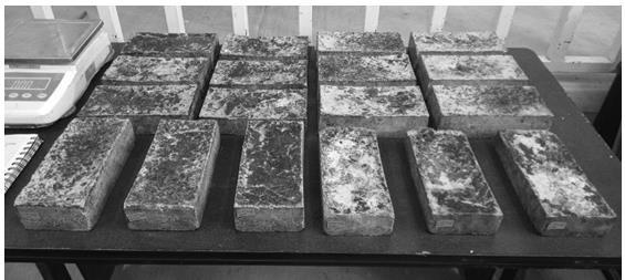 Water absorption of the samples was carried out in accordance with the standards NMX-C404-ONNCCE.2012 for bricks in walls [13] and NMX-C-314-ONNCCE-2014 for paving stones in road surfaces [14]. The amount of water absorption (W) is calculatedbytheformula:W=(P1 –Po)/P0 ‧ 100,%,where:Wisabsorptionvalue,%;Po isweightofdrysample,g;P1 isweight ofsamplesaturatedwithwater,g.