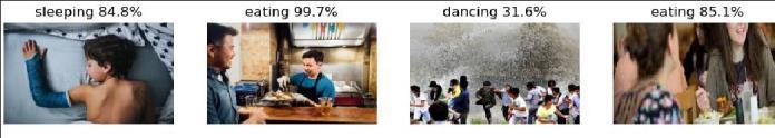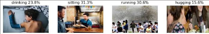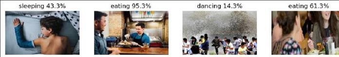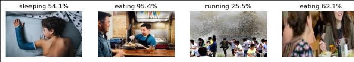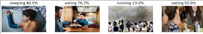 - The Ensembled CNNs do not have training loss and accuracy metrics provided as it has not been trained but ensembledonthebasisofoutputfromdifferentpretrained methods.Itshowsthebestperformanceinthetestingphase witha lossof1.27andanaccuracyof66.0%.Thisimplies that combining the strengths of multiple models through ensembling leads to improved predictive performance, surpassing the individual models' testing accuracies. This analysis highlights the variance in performance across differentpretrainedCNNarchitecturesandunderscoresthe effectivenessofensemblingtechniquesinenhancingmodel accuracy byleveraging the diverse strengths of individual models. A visual display of the accuracy provided in recognizingthehumanactionisdisplayedinfigure4.
