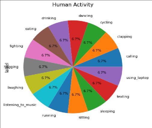 WehaveselectedHumanActionRecognitiondataset[8]for our experimentations The Dataset under Consideration underconsiderationforHumanActionRecognition(HAR) comprises a diverse collection of approximately 12,000 labeled images, each uniquely representing one of fifteen distinctclassesof humanactivities.Thedatasetisdivided into 65:55 ratio for train test split. These images are meticulouslyorganizedintoseparatefolderscorresponding to the labeled classes, ensuring ease of access and classification. This structure facilitates straightforward navigation and manipulation of data across the different categoriesofhumanactions.Thecomplexityofaccurately recognizing and labeling human actions stems from the myriadways in whichthese activitiescanbe represented. DatamodalitiessuchasRGB(coloredlightinthreechannels: red, green, and blue), skeleton (2D or 3D joint positions), depth (distance of an object from a viewpoint), infrared