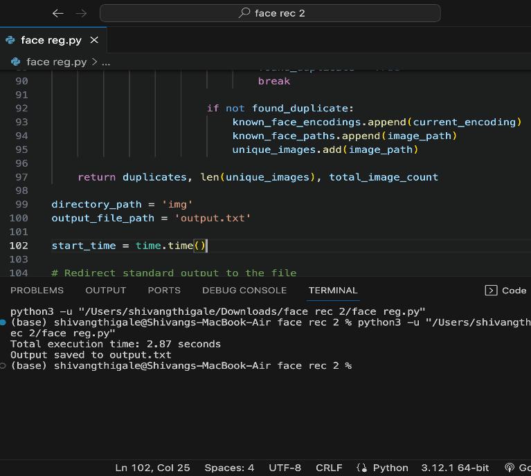 Results and Output: The methodology returns the length of the unique images array and the duplicates, along with the total image count. Additionally, the duplicate faces foundduringtheprocessareprintedforfurtheranalysis.