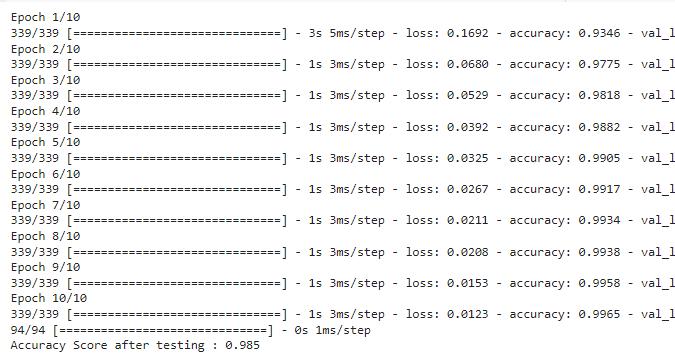Amodelaccuracyrateabove99%indicatesthatthemodelis abletopredictpatternswellinthetestdata.However,the model will become training data, which will cause performancetodegradeonnewdata.Validationdropsand accuracy are monitored during training to prevent overfitting.Monitoringredundancyisimportantbecauseit providesinformationaboutthemodel’sabilitytogeneralize andintegrate.InFigure6.42,boththetrainingandvalidation lossesshowadecreasingtrendindicatingthattheweightsof the model are optimized and the model is learning new information from the data sheet. This model successfully reducesthebinarycrossentropylossofthetrainingdataas canbeseenfromthedecreaseinlearninglossandthisalso showshowgoodthemodelisforthestudymaterials.Thisis supportedbythefactthatthevalidationlossalsodecreases asthemodelgeneralizestothevalidationdata.