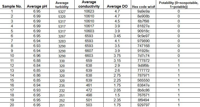 The independent variables in this study are represented by the various water bodies from which water samples are procured. These water bodies serve as distinct categoriesorgroupsforthemachinelearningalgorithm's analysis. Within each category, the parameters, including pH,conductivity,turbidity, anddissolved oxygencontent, are measured and act as the features or characteristics used for the machine learning algorithm. These parameters are the focus of the study particularly concernedwiththeirrelationshiptotheHEXcolourcode, and the different water bodies, from different locations, are the independent variable. The machine learning algorithmemploysthesefeatureswithineachcategory to make predictions, classifications, or other data-driven decisions. This research design allows the algorithm to learn patterns and relationships within and between the water bodies and the parameters, enabling it to make predictions or assessments relevant to the study's objective of assessing water quality through image recognitionthroughsupervisedlearning.