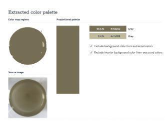 Simultaneously, using the colour extraction algorithm the HEX code values and the respective intensity percentage of those HEX code values were extracted. These values wereaccountedforinthedatasheetastheyplayacrucial role in thedevelopmentof a supervised machine learning algorithm.Belowisan exampleofoneofthesamplesthat underwentthisprocess.