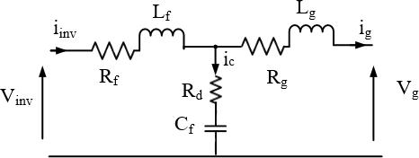 (1a) (1b) where Vinv{.} , iinv{.} , ig{.} , i{.} , ic{.} and Vg{.} represents inverter output voltage, inverter output current, grid feeding current, inductor current, capacitor current and the grid voltage of {a, b, c} phase respectively. The R = (Rf + Rg), and LT = (Lf + Lg) where Rf , Rg, Lf and Lg are the inverter side and grid side filter resistance and inductance respectively. Rd is a damping resistor. The Cf is the filter capacitance and ω is the grid frequency.