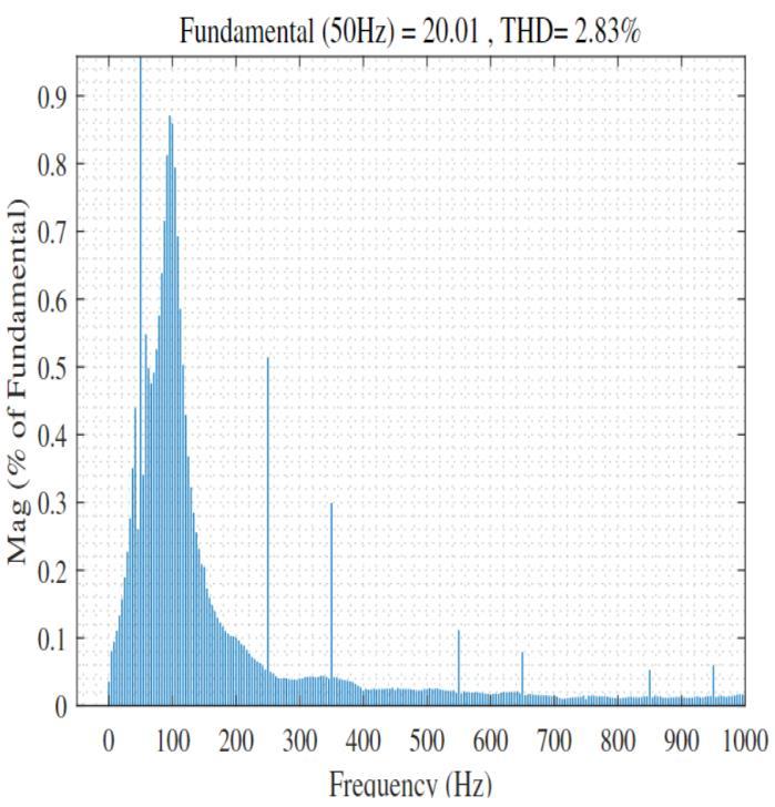 Fig - 13:THDanalysisofVSIoutputcurrent(a).forPI controller,(b).forPRcontroller.