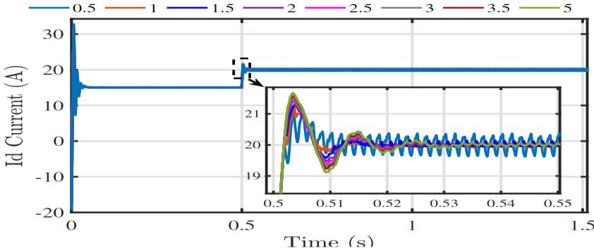 Theselectedcontrollerparametersaredetailedinboth Table5andTable6.Toinitiatetheoptimizationprocesses, theinitialparametersforthePSOandGAarederivedfrom theZNmethod,whichassistsinestablishingtheupperand lower limits. In Fig. 9, a comparative analysis of the PI controller’ssettlingtime(Tss)andmaximumpeakovershoot (Mp)isconductedacrossdifferenttuningmethods,including ZN,PSO,andGA,andtheresultsaresummarizedinTable6. Notably,GAoutperformstheothermethodsbyachieving Mp value and Tss that aligns with the desired criteria. Consequently,theGAtuningmethodisselectedforfurther experimentalvalidation,asitmeetsallthespecifiedcriteria. The exploration into the controller’s performance under weakgridconditionsispromptedbytheintermittentnature ofrenewablesourcesandvariationsinload-sideimpedance. Inthiscontext,the figures,specificallyFig.10,11,and12, illustrate the dynamic response of the PI controller under variousconditionsduringpowerregulation.Thesefigures underscore the controller’s efficacy in the nonlinear time domain,particularlywhentherearechangesincurrentfrom 15A to 20A, demonstrating its dynamic response and its capabilitytocontrolreactivepowereffectively.