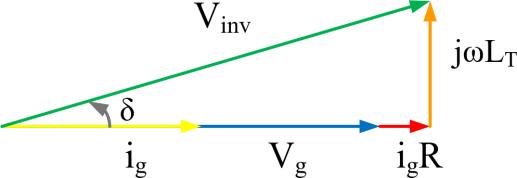 Fig - 3: (a).EquivalentcircuitdiagramofLCLfilter connectedbetweenVSIandgrid,(b).Phasordiagramfor theunitypowercondition.