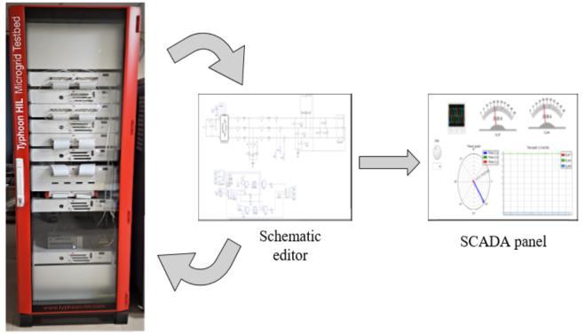 The plant function, considering all aspects outlined in sectionIII,andtesteditinMATLAB/SIMULINK.Thistesting helps us select accurate parameters in line with standard requirements[4],[9].Thecontrollergainvalueshavebeen diligently calculated using three distinct methods to optimize controller performance during operation. These optimizationalgorithmshavebeenimplementedincustom m-files.Theeffectivenessofthecontrollerloopoptimization hasbeenrigorouslytestedandverifiedusingtheTyphoon real-time emulator model-604, which provides an impressive 20-nsec sampling resolution. In Fig. 16, the schematiceditorisusedforVSImodelingpurposes,whichis compiledwiththereal-timehardwareemulatorset-up,and theSCADA(SupervisoryControlandDataAcquisition)panel isusedformonitoringandvisualizationoftheoutputresults.
