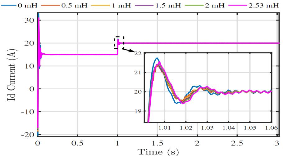 and(b).Thefigureimpliesthatthecontrollerachievesthe steadystatewithinthestandardtime(Tss =3-5ms)and Mp within 5% for the CCL. We find the Lg variation for the transientconditioninCCL,whichcouldberesponsiblefor the system’s stability. The minimum Lg value has the maximum Mp and Tss. The best controller tracking performanceisobtainedwhen Lg issetto2.53mH,the Mp and Tss arewithinthedesiredcriteria,seeinFig.10(a).At thisvalue,theinductanceratio(aL)wouldbeone,andthe capacitor requires minimum energy storage, which also fulfills our filter design objective. From the above demonstration it is clear that as the controller performs worse as the Lg value decreases, so it is important to maintain the grid impedance according to the connection requirements.Inweakgridscenarios,itisbettertoconsider equalizingthevalueofLf toreduceharmonicsandcurrent distortionattheloadside.