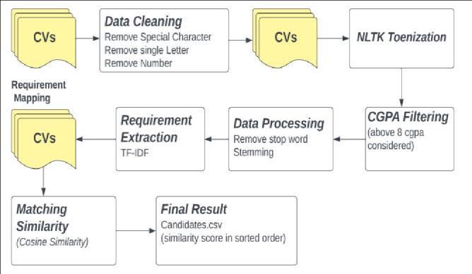 Thissectionoutlinesarobustmethodologyforcreatingan advancedresumeshortlistingsystem.Itcombinesvarious techniques to automate candidate selection, ensuring efficiency and accuracy in the process. The proposed methodologyisstructuredsystematically,offeringadetailed frameworkforseamlessintegrationandimplementation.It encompasses diverse strategies, enhancing the overall effectiveness of resume screening and optimizing the recruitmentworkflow.