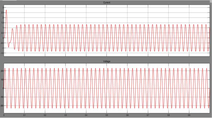 Figure 7, shows the current and voltage waveforms of the grid.Voltageo230Voltsandcurrentof1.3Aisobservedfrom thewaveforms.