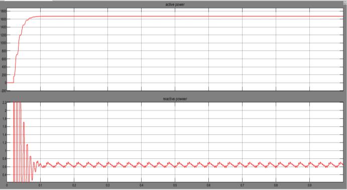 The active power measured of the inverter is found to be around1700Wandthereactivepowerisaround0.7.Figure 6, shows the active and reactive power waveforms of inverter.