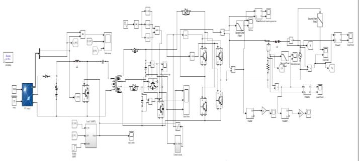 The simulation circuit of H-bridge multi-level inverter for gridintegrationisshowninfigure3.APVmoduleof250V, 2KW is connected to SEPIC converter integrated 5-level inverterinordertosupplytheloadof1KVAaswellasgridof 50Hz. INC algorithm is used as MPPT in order to extract maximumpowerfromPVmodule.