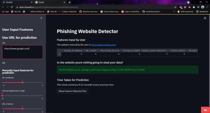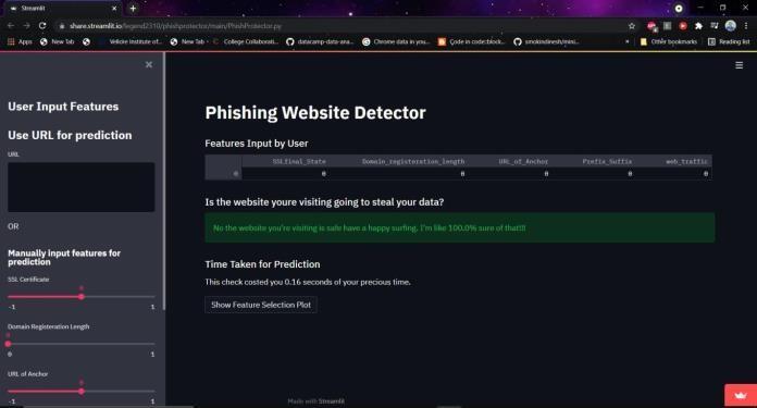 Streamlit is an open-source python library that is useful to create and share data web apps. It is slowlygaining a lot of momentum in the data science community. Because of the ease with which one can develop a data science web app, many developers use it in their daily workflow. In this final moduleweaimtotakethebestfittingmoduleandimplement ina user-friendly Web Application that any common person with minimal knowledge of machine learning or internet security can use to easily get a highly accurate prediction of whetherawebsiteislegitimateoraphishingwebsite.