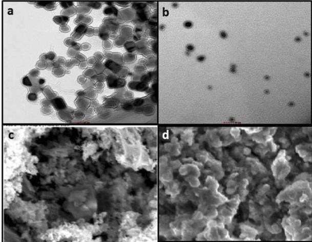 Figure 7. a,c-ZnONanoparticles,b,d-CalciumcoatedZnO Nanoparticlesshapeandsize