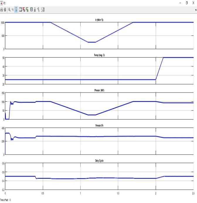 Fig-2: VariableIrradiance,VariableTemperature.Mean Power,MeanVoltage,Dutycycleofproposedmodel