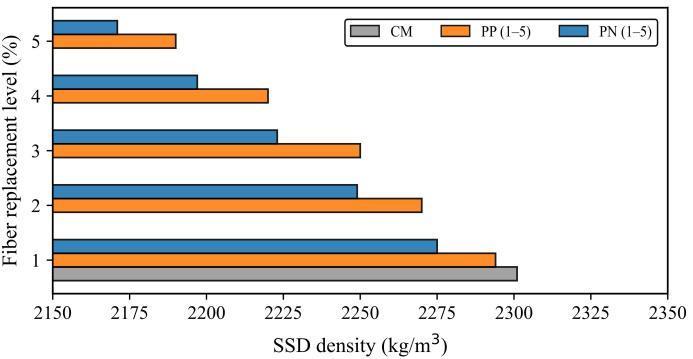 water absorption and reduced SSD density in a dosedependentmanner,withPNhavingthestrongereffect.While theresultingreductionindensityisattractiveforlightweight applications, the higher absorption implies increased permeabilityandpotentiallylowerresistancetofreeze–thaw andchemicalattack,especiallyathighfibercontents.