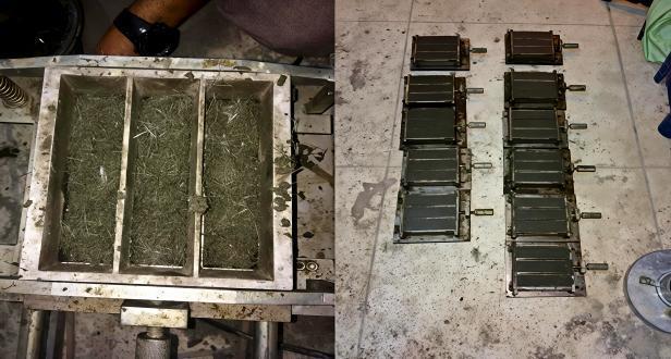 Figure4:Prismaticsteelmolds(40×40×160mm)andfresh fiber-reinforcedmortar.