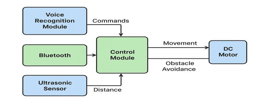 Abstractandrelevance:ThisworkusesAndroid-basedvoice recognition to control a robot and ultrasonic sensors for obstacledetection.Thesystemrequiresinternetconnectivity andofferslimitedautonomy. Ourprojectimprovesthisby