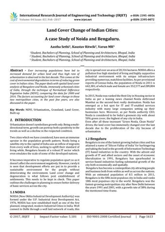 Land Cover Change of Indian Cities: A case Study of Noida and Bengaluru. Aastha Sethi1, Kaustav Ritwik2, Varun MR3 1Student,