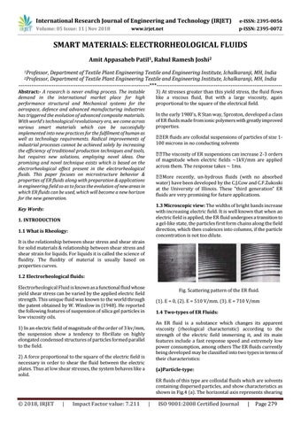 SMART MATERIALS: ELECTRORHEOLOGICAL FLUIDS Amit Appasaheb Patil1, Rahul Ramesh Joshi2 1Professor,