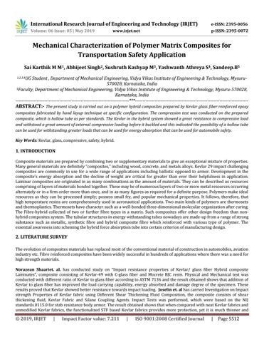 Mechanical Characterization of Polymer Matrix Composites for Transportation Safety Application Sai Karthik M M1, Abhijeet Singh2, Sushruth Kashyap M3, Yashwanth Athreya S4, Sandeep.B5 1,2,3,4UG