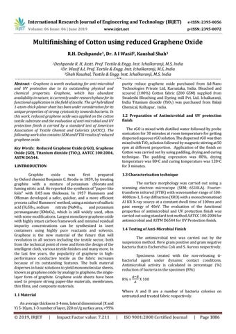 Multifinishing of Cotton using reduced Graphene Oxide R.H. Deshpande1, Dr. A I Wasif2, Kaushal Shah3 1Deshpande