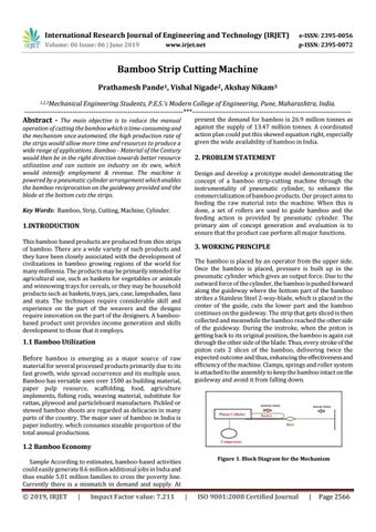 Bamboo Strip Cutting Machine Prathamesh Pande1, Vishal Nigade2, Akshay Nikam3 1,2,3Mechanical