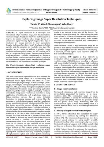 Exploring Image Super Resolution Techniques Varsha R1, Vibush Shanmugam2, Neha Ghaty3 1,2,3Student,