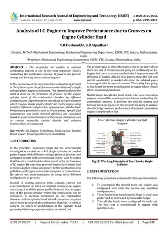 Analysis of I.C. Engine to Improve Performance due to Grooves on Engine Cylinder Head V.R.Deshmukh1, A.B.Atpadkar2 1Student,