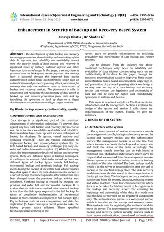 Enhancement in Security of Backup and Recovery Based System Bhavya Bhatia1, Dr. Shobha G2 1Department