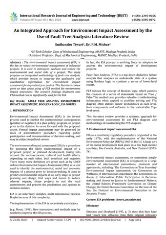 An Integrated Approach for Environment Impact Assessment by the Use of Fault Tree Analysis: Literature Review Sudhanshu Tiwari1, Dr. P.M. Mishra2 1M-Tech