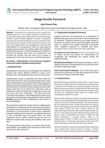 Image Doodle Password Janvi Susan Vinu Student, Dept. of Computer Applications, Christ Knowledge City College, Kerala , India ---------------------------------------------------------------------***----------------------------------------------------------------------