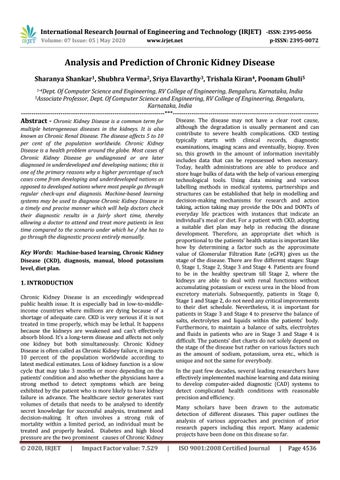 Analysis and Prediction of Chronic Kidney Disease Sharanya Shankar1, Shubhra Verma2, Sriya Elavarthy3, Trishala Kiran4, Poonam Ghuli5 1-4Dept.