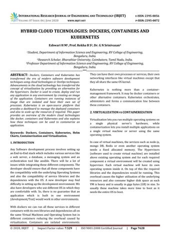 HYBRID CLOUD TECHNOLOGIES: DOCKERS, CONTAINERS AND KUBERNETES Eshwari H M1, Prof. Rekha B S2, Dr. G N Srinivasan3 1Student,