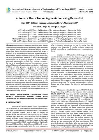 Automatic Brain Tumor Segmentation using Dense-Net Vilas B M1, Abhinav Narayan2, Akshatha Herle3, Manjushree M4, Prakash Tunga P5, Dr Vipula Singh6 1B.E