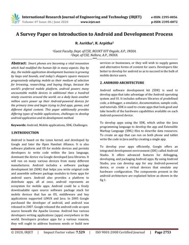A Survey Paper on Introduction to Android and Development Process R. Asritha1, R. Arpitha2 1Guest
