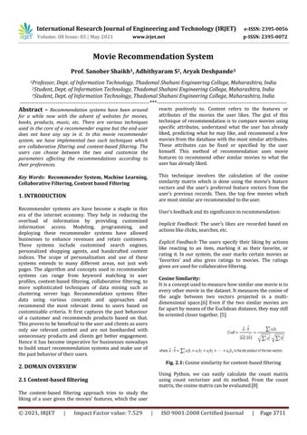 Key Words: Recommender System, Machine Learning, Collaborative Filtering, Content based Filtering
