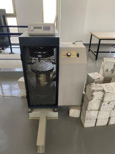After casting the cubes in standard dimension of 150 mm X 150 mm X 150 mm moulds, curing process divided into 3 groups of inspection which are 7, 14 and 28 days. After that it is tested using the crushing machinein concrete laboratory (Figure 4).