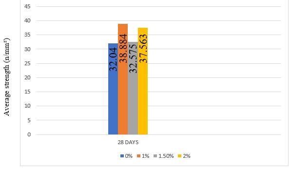 Figure 5 Comparison of the results of all the samples with 1%,1.5% and 2% percentage of steel fibers with 7, 14 and 28 days.