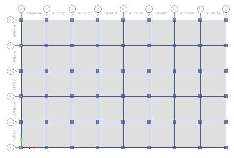 3. METHODOLOGYFigure:BuildingLayout The data’s taken for the analysis Gradeofconcrete:M45 Gradeofsteel:Fe550 Beam:700×500mm Column:700×700mm Onewayslab:200mm StoryHeight:3m Zone:V Zonefactor:0.36(ReferTable2) Importancefactor:1.0(ReferTable6) ResponsereductionFactor:5.0(ReferTable7) SoilType:Medium