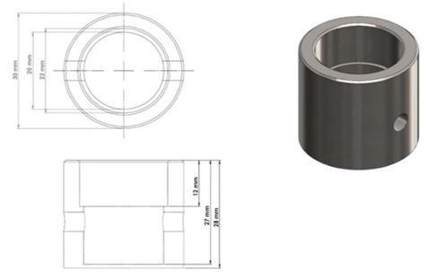 5.Piston:Fig-5showsthedesignviewofpistonwhichhas diameterof30mm.Pistonisusedtocompresstheairinside thecylinderandtransferenergy.