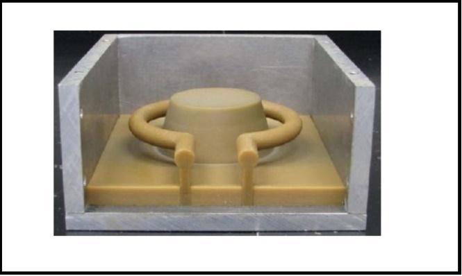Brassnozzlesconnectcoolanttubestothecirculartunnelof the mold. Brass nozzles are used to connect coolant pipes, but they are incompatible with the profiled channel. Figure 11 depicts how to attach pipes to moulded channels. The ends of this structure are contoured and rounded. Epoxy moldsprintedin3D.Aftertheepoxyhardens,itwillbeused to construct the nozzle attachment for the finished product. Alongthecircularridgeofthemold.