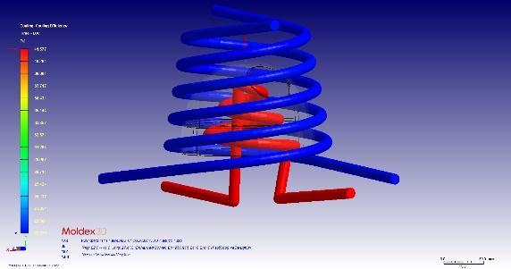 Conformalcoolingchannelprovidedbetterheatcontrolthan standard cooling channel and one without cooling channel, reducing cooling time by 70.03 and 90.26 percent, respectively.