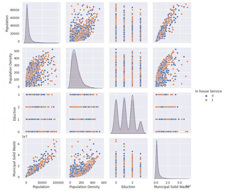 Figure 1:Pairplotofdependentvariablescategorizedby inhouseservice