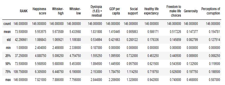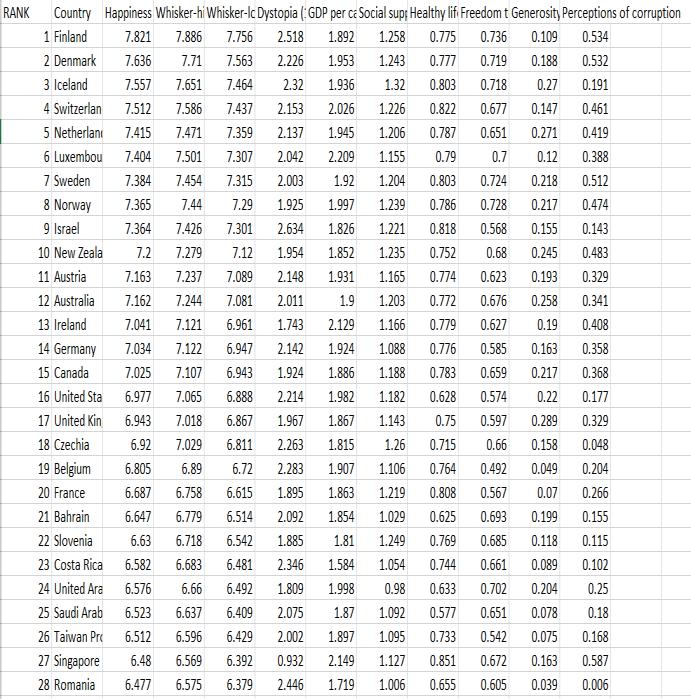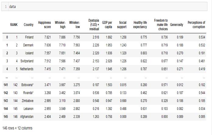 Thedataset(WorldHappinessReport2022)isimportedinto theJupyternotebookinthiscase. data = pd.read_csv("Path\World Happiness Report 2022.csv") data