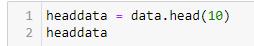 #head() returnsthedataatthetopofthedataset.Thehead's defaultvalueis5.().Thetoptenrowsofthedatasetareused inthiscase.
