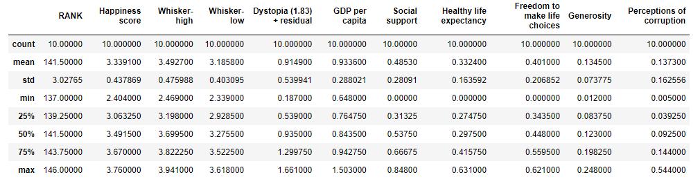 Abstract - The data analysis in this research is done with Python. The programming language is being explored. This article quickly describes the fundamental processes of data analysis, such as cleaning, transforming, and modelling data, with an emphasis on exploratory data analysis. Data analysis of an existing dataset and discovery of insights Using several Python libraries and methods, some graphical analysis of data from the dataset will be demonstrated. Here, A dataset titled "World Happiness Report 2022" is used to examine and extract data in both numerical and visual formats.