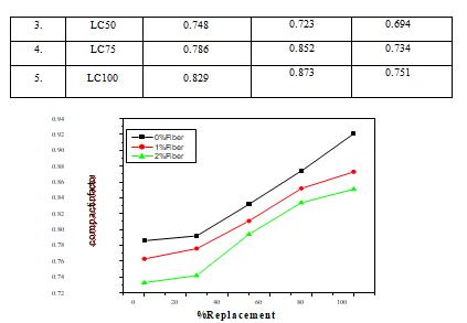 The usefulness of blends has been estimated by Compaction factor test. The upsides of compaction factorsresultsareintroducedinTable5.1andFigure5.1.